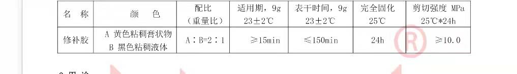 2 配膠 按規(guī)定進行配制,將膠置于潔凈、干燥、無油的容器中,混合均勻至顏色一致。配膠不宜過多,做到隨配隨用。夏季一次配膠量不應超過 500 克。